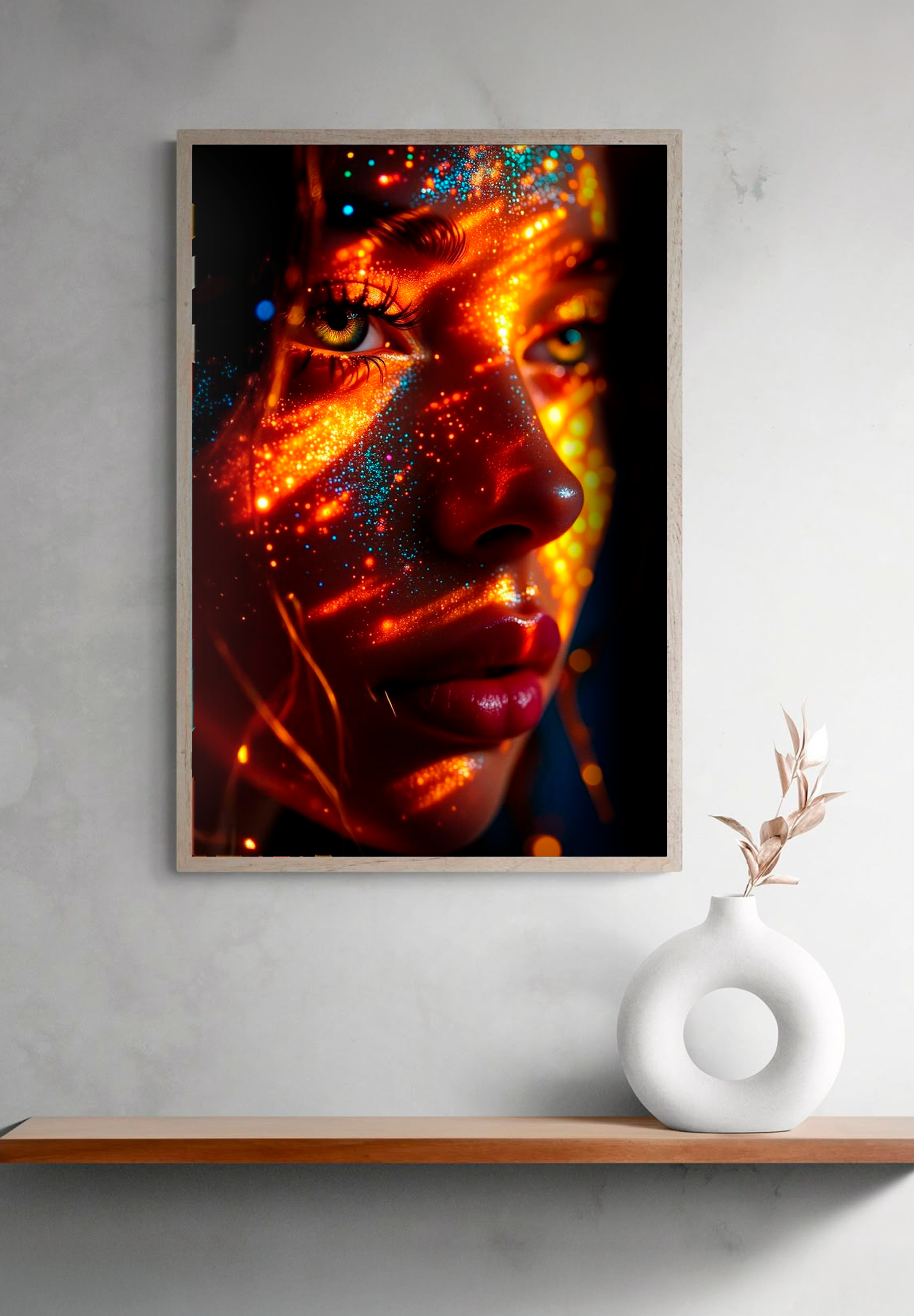 Agrega un toque a tus paredes con el cuadro metálico "Mujer cara escarcha" , medidas 42 x 33 cm